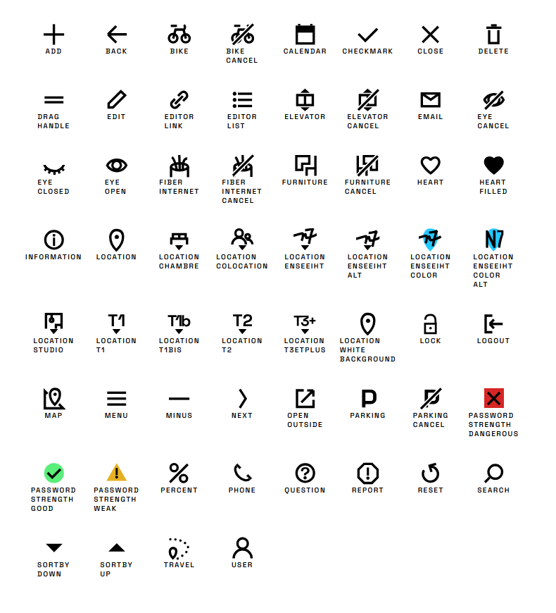 Étant donné le peu d’icônes nécéssaire au site, j’en ai profité pour designer mes propres icônes, chose que j’ai rarement l’occasion de faire (sur des projets plus larges, il y a trop d’icônes pour justifier le temps passé à les créer).